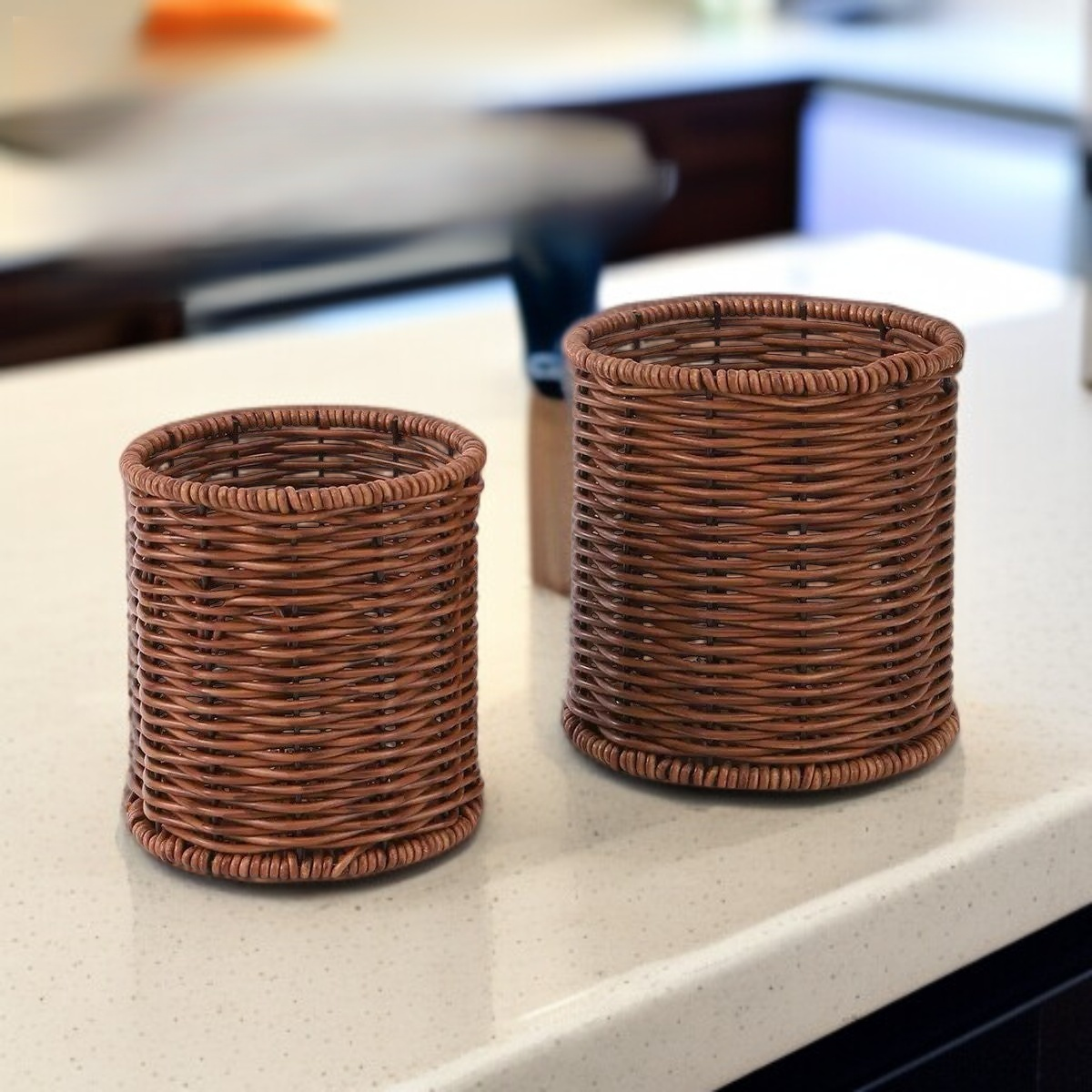 Western-Style Cutlery Organizer Basket, Faux Rattan Cutlery Drainer