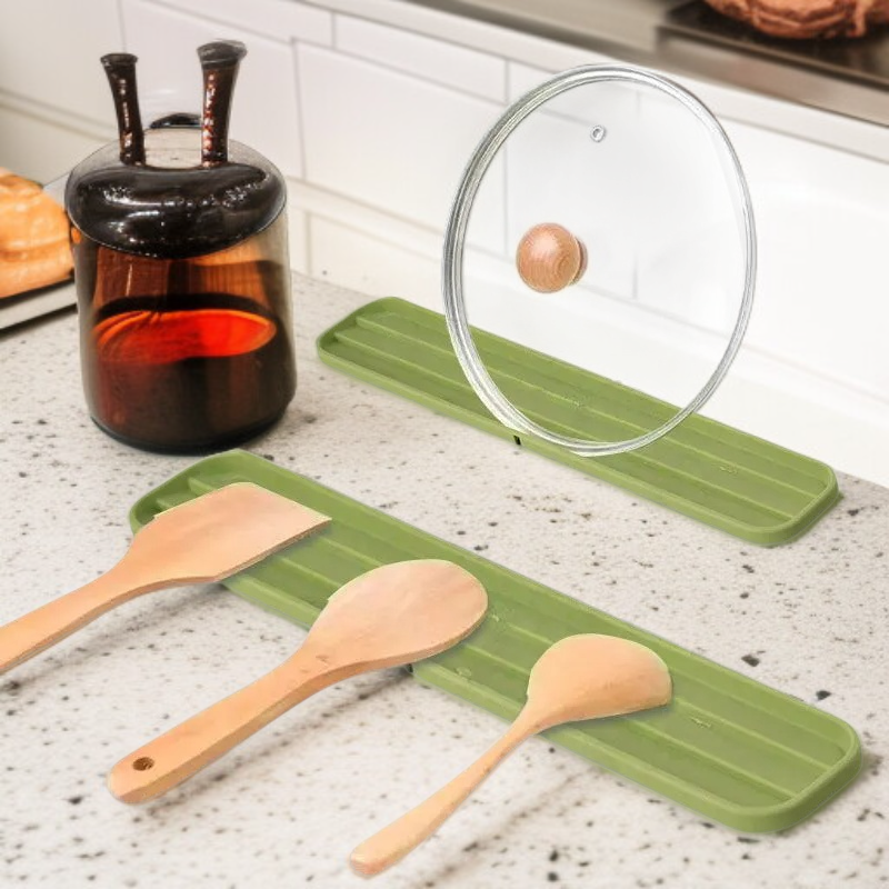 ● Fabricada con silicona de alta calidad, resistente al calor y fácil de limpiar, ideal para mantener tu cocina ordenada y libre de humedad. ● Diseño multifuncional que permite drenar el agua de las tapas de ollas y almacenar utensilios de cocina, optimizando el espacio en tu encimera. ● Superficie antideslizante que garantiza la estabilidad de las tapas y utensilios, evitando accidentes y protegiendo tus superficies. ● Flexible y plegable, se adapta a diferentes tamaños de tapas y se puede guardar fácilmente cuando no está en uso.